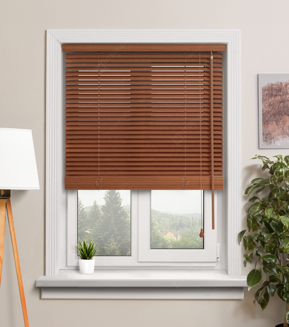 Липа — пожалуй, самый универсальный вариант. Она лёгкая, достаточно прочная и хорошо переносит окрашивание или тонировку. Благодаря однородной структуре рисунка готовое полотно выглядит ровно и аккуратно, а сами жалюзи подходят под разные стили оформления. Срок службы у липы меньше, чем у дуба, но при правильном уходе жалюзи способны прослужить до двадцати лет. При этом материал стоит значительно дешевле других популярных пород.
