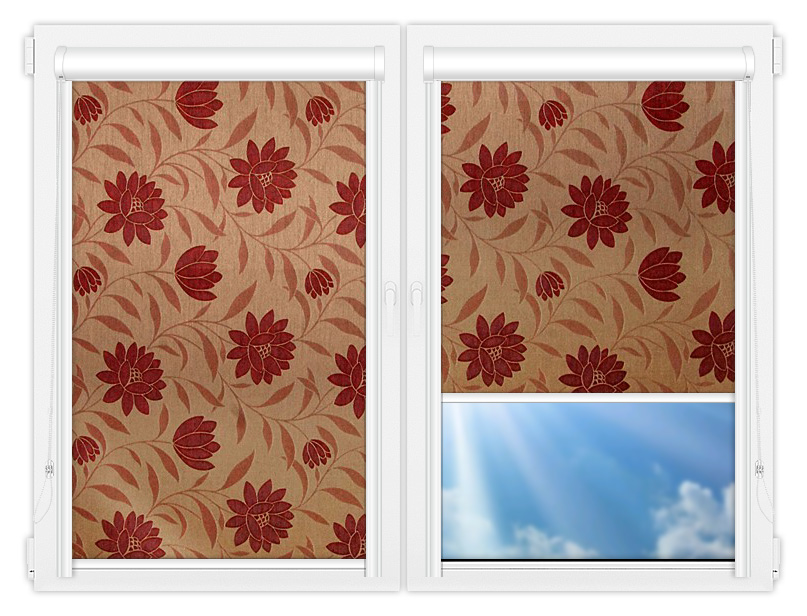 Рулонные кассетные шторы УНИ - Далия-красный на пластиковые окна