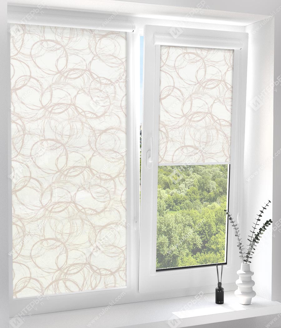Состав: 100% полиэстер. Светопропускание 50%. Монтаж на окна без сверления.