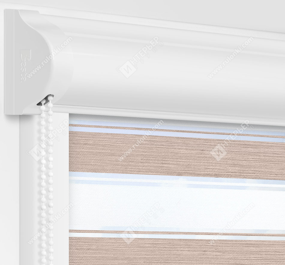 Комплектация: кассета (короб) с тканью и цепью управления, боковые направляющие, фиксатор цепи и системы крепления – без сверления (на двусторонний скотч) или на саморезы. По умолчанию - цвет фурнитуры белый.