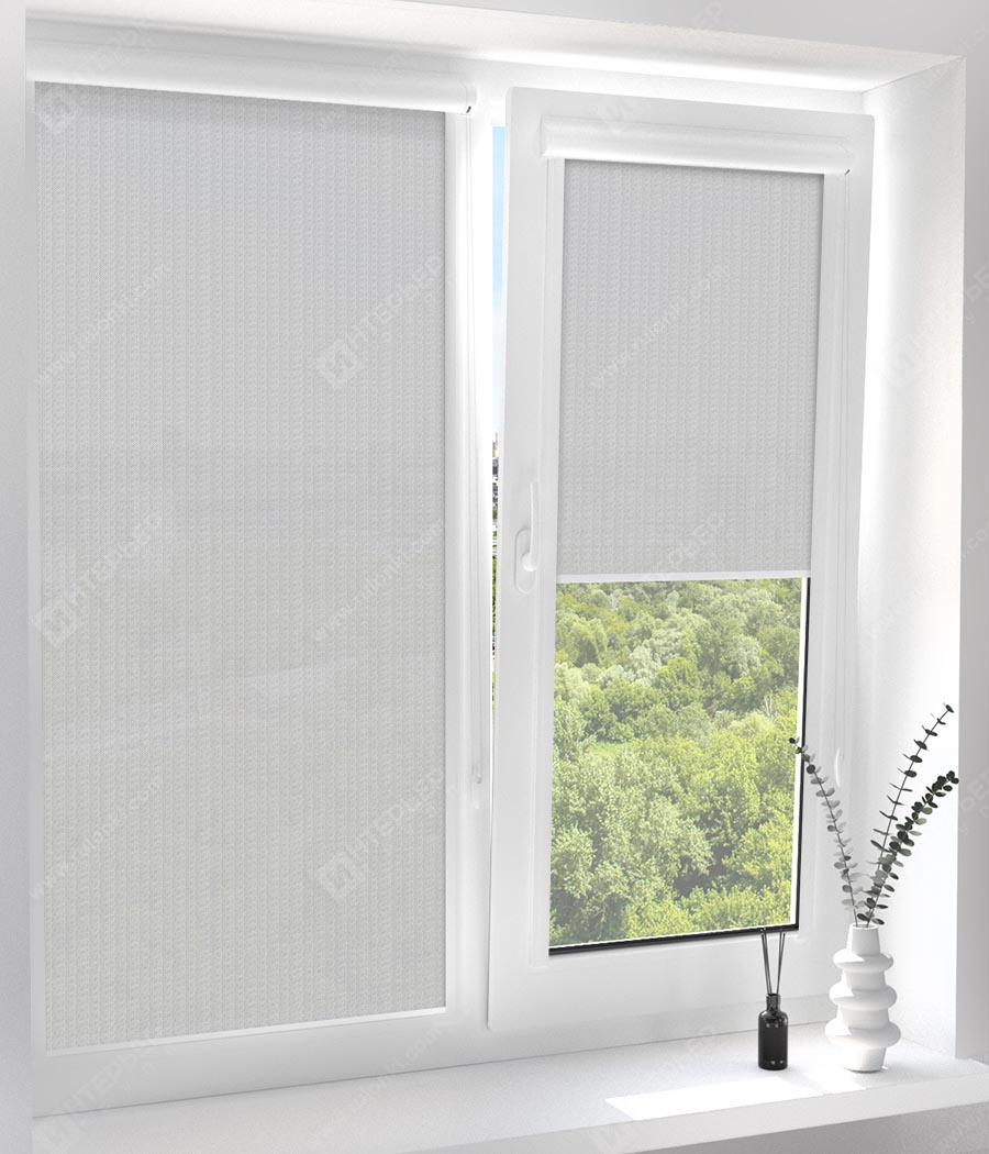 Состав: 30% полиэстер, 70% ПВХ. Светопропускание 50%. Монтаж на окна без сверления.