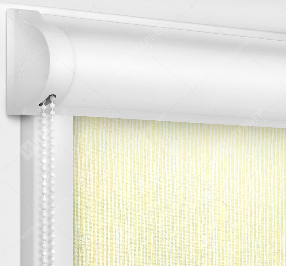Комплектация: кассета (короб) с тканью и цепью управления, боковые направляющие, фиксатор цепи и системы крепления – без сверления (на двусторонний скотч) или на саморезы. По умолчанию - цвет фурнитуры белый.