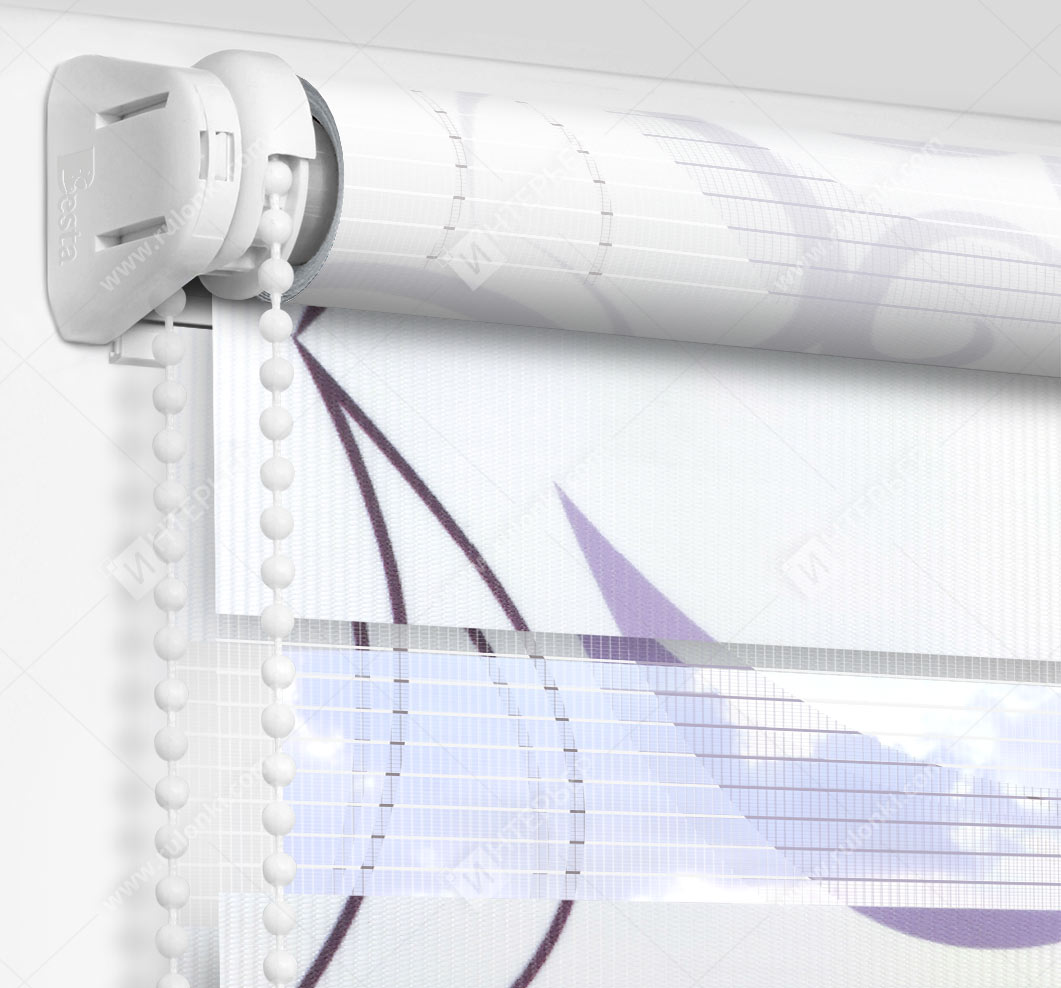 Рулонные шторы Зебра работают следующим образом: полоски ткани смещаются так, чтобы совпали светлые или темные слои, образуя, плотное или более прозрачное полотно. Так обеспечивается ночной или дневной режим затемнения. Также можно поднять шторное полотно полностью, открывая окно. По умолчанию - цвет фурнитуры белый.