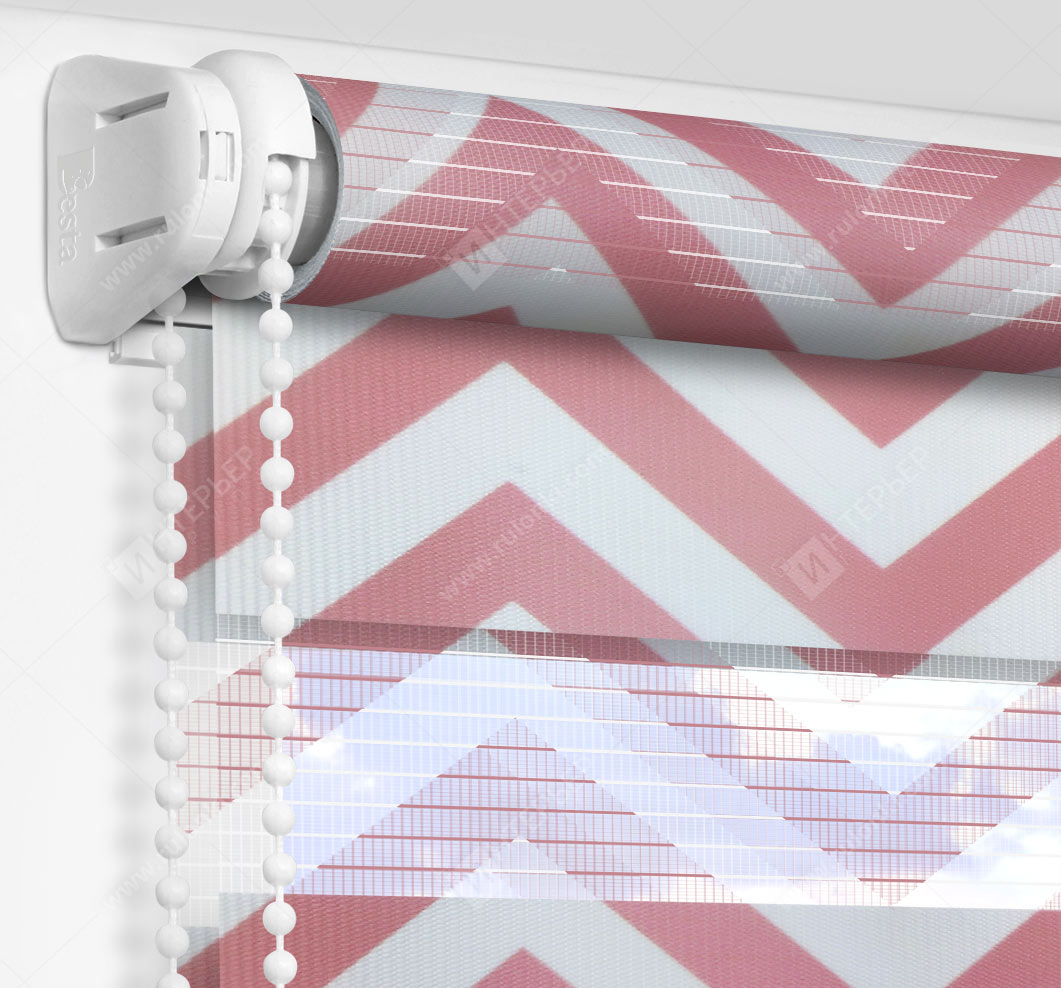 Рулонные шторы Зебра работают следующим образом: полоски ткани смещаются так, чтобы совпали светлые или темные слои, образуя, плотное или более прозрачное полотно. Так обеспечивается ночной или дневной режим затемнения. Также можно поднять шторное полотно полностью, открывая окно. По умолчанию - цвет фурнитуры белый.