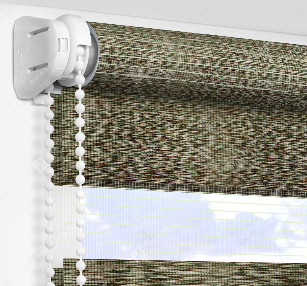 Рулонные шторы Зебра работают следующим образом: полоски ткани смещаются так, чтобы совпали светлые или темные слои, образуя, плотное или более прозрачное полотно. Так обеспечивается ночной или дневной режим затемнения. Также можно поднять шторное полотно полностью, открывая окно. По умолчанию - цвет фурнитуры белый.