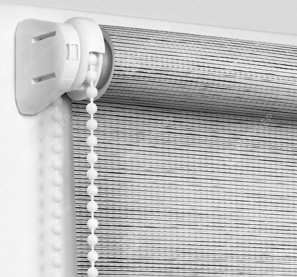 Комплектация: вал с тканью и цепью управления, фиксатор цепи и системы крепления - без сверления (на двусторонний скотч) или на саморезы. По умолчанию - цвет фурнитуры белый.