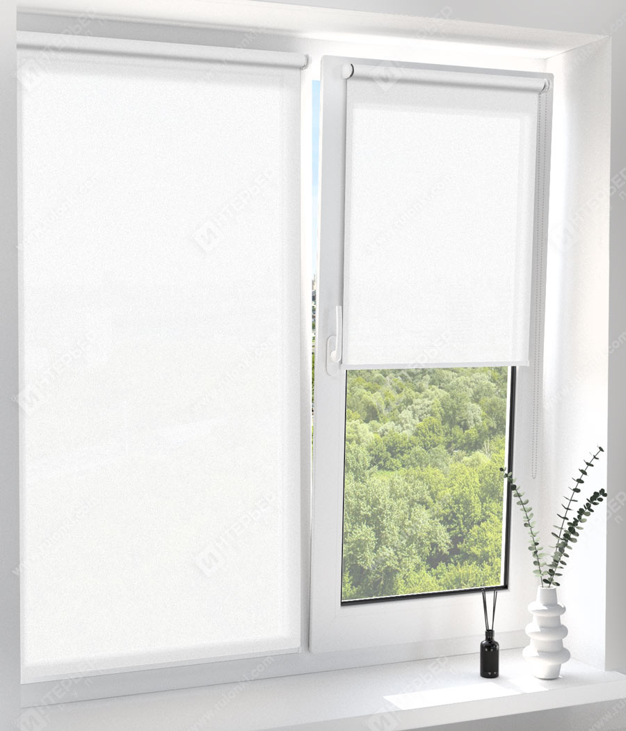 Комплектация: вал с тканью и цепью управления, фиксатор цепи и системы крепления - без сверления (на двусторонний скотч) или на саморезы. По умолчанию - цвет фурнитуры белый.