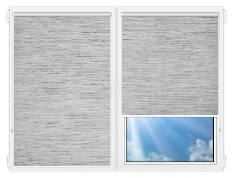 Комплектация: вал с тканью и цепью управления, фиксатор цепи и системы крепления - без сверления (на двусторонний скотч) или на саморезы. По умолчанию - цвет фурнитуры белый.